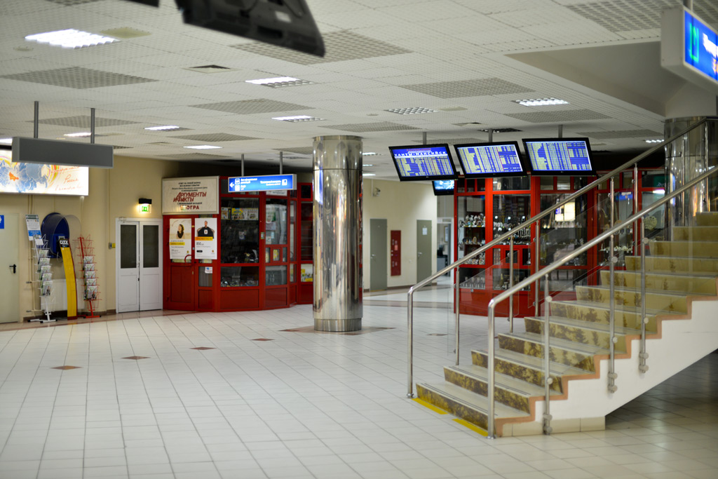 The airport terminal building in Khanty-Mansiysk, with its original architectural design, has a capacity of 300 passengers per hour (including the international sector). It is equipped with modern technical facilities such as telescopic ramps, escalators, elevators, security screening and baggage handling systems, information and security systems, communication tools, etc., to ensure a high-tech production process and quality passenger service.