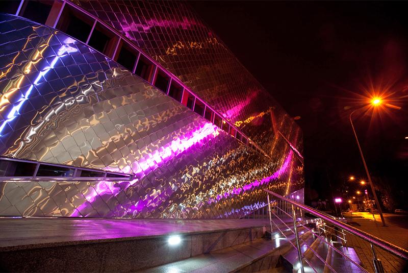 “GAZPROM for kids” program specially for holding the 39th Chess Olympic games. During the realization of the project, a unique for Russia façade technology “Schuka” was used for the building envelope – plates of set shape and size were made of stainless steel – it was developed specially for this project.